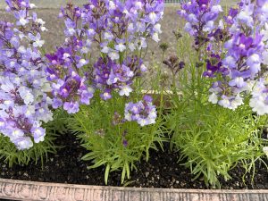 キンギョソウを小さくしたような、紫、白、ピンクなど